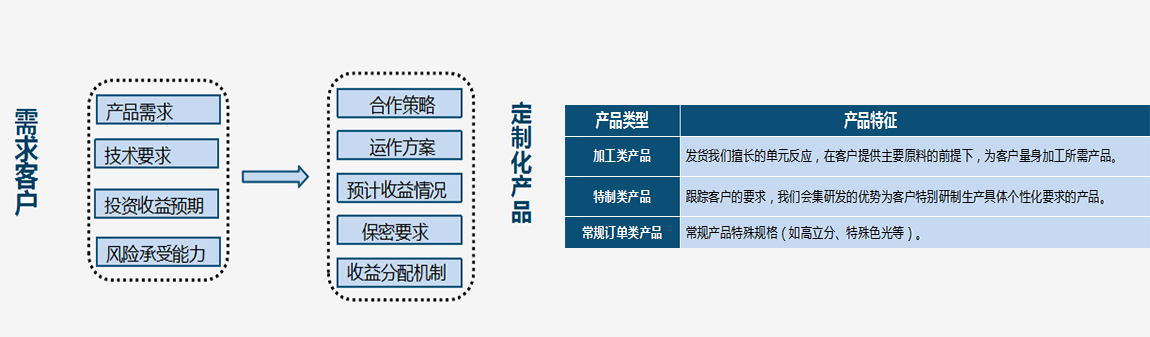 我司已與多家跨國公司開(kāi)展了定制化產(chǎn)品的服務(wù)。根據不同的客戶(hù)群體的需求、成本偏好以及收益預期,結合我們擅長(cháng)的優(yōu)勢化學(xué)單元反應的生產(chǎn)經(jīng)驗,為客戶(hù)量身定制符合個(gè)性化需求的產(chǎn)品。